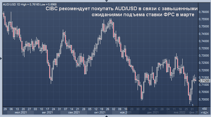 CIBC рекомендует открывать длинную позицию по австралийскому доллару по отношению к доллару США, поскольку рынки преувеличивают масштабы мартовского ужесточения ДКП Федеральной резервной системы.