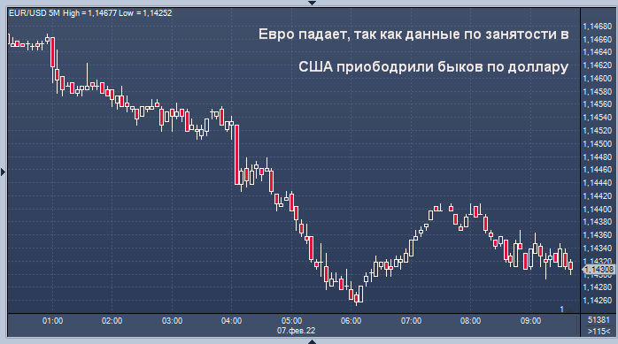 Тем не менее, доллар затем нашел поддержку, так как доходность казначейских облигаций США выросла после намного лучших, чем ожидалось, данных о занятости. Рынки теперь оценили шансы один к трем, что ФРС может повысить ставки на полные 50 базисных пунктов в марте, и есть разумная вероятность того, что ставки достигнут 1,5% к концу года.