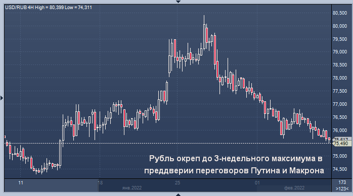 Рубль отошел от почти 15-месячного минимума в 80,4125, достигнутого в прошлом месяце, когда он был ослаблен опасениями, что Россия планирует вторгнуться в соседнюю Украину, что побудило Запад озвучить угрозы новых санкций против Москвы.