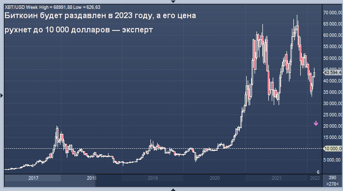 Он ожидает, что крупнейшая в мире криптовалюта упадет до этого минимума в 2023 году.
