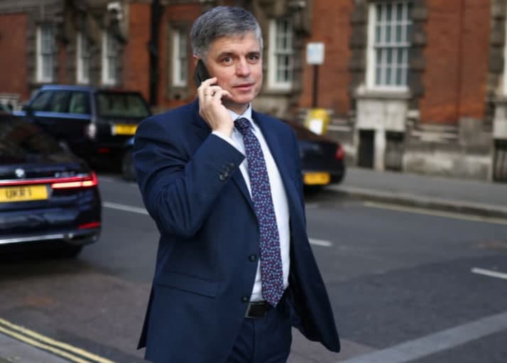 Посол Украины в Великобритании Вадим Пристайко на прогулке в Вестминстере, Лондон, Великобритания, 9 февраля 2022 года. REUTERS/Tom Nicholson