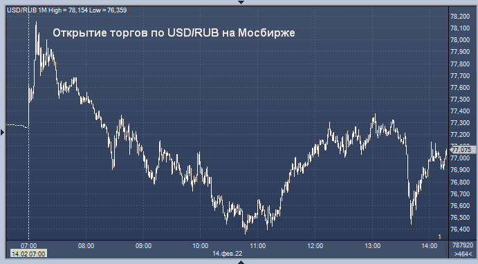 Таким образом, по официальному курсу ЦБ доллар вырос к рублю на 1 рубль 59 копеек, а евро вырос к рублю на 1 рубль 49 копеек по сравнению с официальным курсом субботы. Объем торгов на Московской бирже к 14:16 мск понедельника составил 1 441,2968 млрд рублей или 19 220,6992 млн долларов. Рубль сегодня вновь сильно подешевел, что вызвано распространением среди союзников разведданных США о том, что Россия якобы нападет на Украину на этой неделе. Россия назвала это пропагандой войны в нарушение международной конвенции.