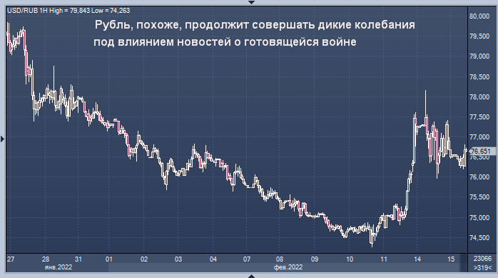 Возможно дальнейшее укрепление рубля с текущих уровней, полагает директор по инвестициям "Локо-Инвеста" Дмитрий Полевой. Успокаивающие, по мнению ряда наблюдателей, комментарии президента России на встрече с министрами обороны и иностранных дел частично вернули уверенность. Но Запад продолжал нагнетать, поэтому показатели опционной волатильности на 1 мес. почти приблизились к 25%, а фактической - к 18%. При таком масштабе колебаний керри-эффекты отходят на второй план. Но сессия вновь показала, что одной фразы может быть достаточно, чтобы сильно двинуть курс в обе стороны.