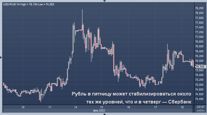 «Рубль в четверг отступил до 76,1 руб./$1, а утром в пятницу торговался около 75,9 руб./$1. Спрос на валюту может увеличиться из-за приближающихся в США длинных праздников - иностранные участники рынка, скорее всего, будут закрывать или хеджировать открытые позиции. С другой стороны, в преддверии крупных налоговых платежей экспортёры могут увеличить продажи валюты. Полагаем, что рубль в пятницу может стабилизироваться около тех же уровней, что и в четверг», — отмечают в инвестбанке.