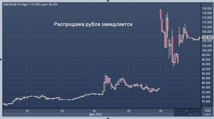 Сейчас есть два рынка валют: один рынок работает с 10:00 утра до 19:00 мск на Мосбирже, где операции проводят Центробанк и российские банки и компании (иностранцы временно отстранены от этого рынка), и есть рынок за пределами этого времени, где торгуют банкиры с потребителями, которых обуяла паника, где курсы доллара и евро к рублю могут отличаться от первого рынка на десятки рублей, а также межбанковский рынок где банки торгуют друг с другом. Во время работы первого рынка котировки всех прочих рынков приходят в разумное соответствие с более ликвидной площадкой Мосбиржи.