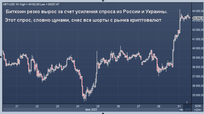 Биткоин резко вырос после начала специальной войсковой операции России в Украину, чему способствовали покупатели в этих странах, стремящиеся хранить и переводить деньги в анонимной и децентрализованной криптовалюте.