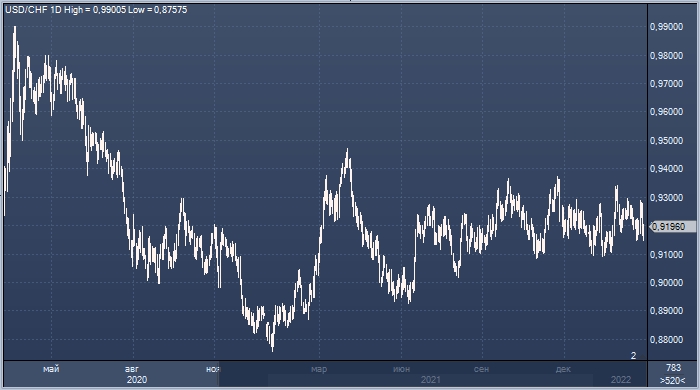 График доллар/франка интервалами в 1 день