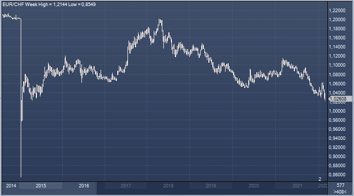 График евро/франка интервалами в 1 неделю