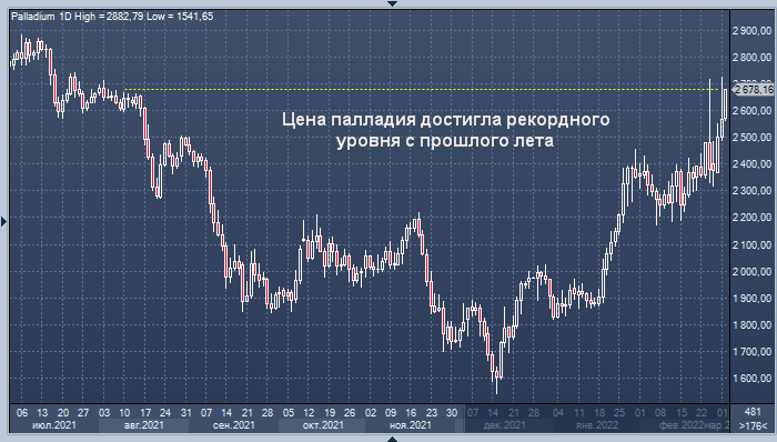 График цены палладия интервалами 1 день