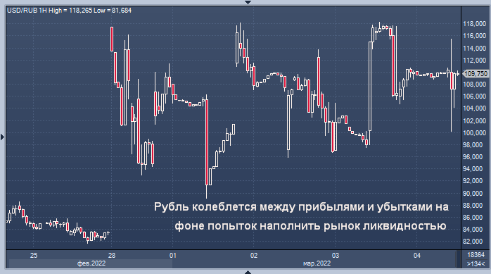 Рубль колебался между 110 и 116 за доллар на волатильных торгах в Москве к 09:23 по Гринвичу после достижения рекордно низкого уровня 118,35 в четверг.