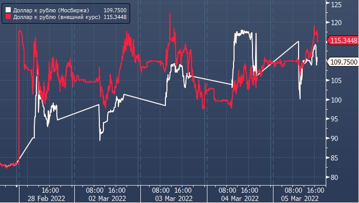 Уровни курса пары USD/RUB в настоящее время всецело определяются геополитическими новостями и действиями ЦБ РФ -по мере поступления новостей курс национальной валюты, вероятно, продолжит показывать высокие уровни волатильности, двигаясь в широком диапазоне 95–120 рублей за доллар, говорится в комментарии аналитиков банка «Санкт-Петербург».