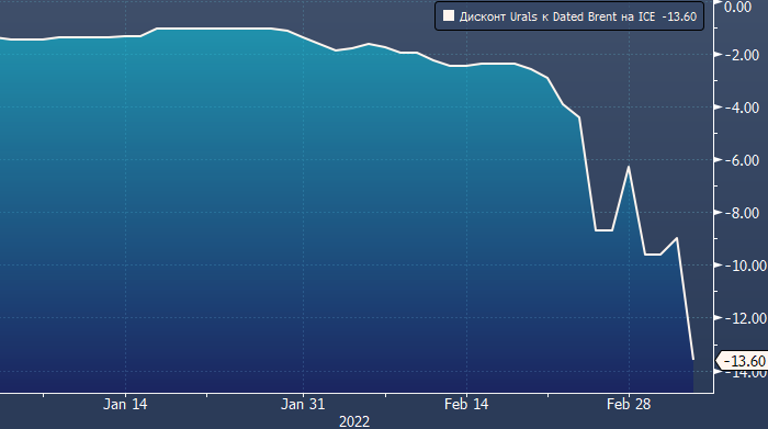 С момента начала специальной военной операции РФ на территории Украины нефть марки Urals предлагалась со все большим и большим дисконтом относительно бенчмарка Dated Brent, и до пятницы на нее не было покупателей.