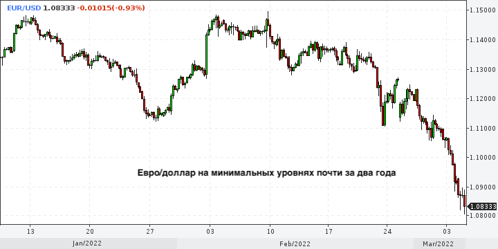 На азиатских торгах в понедельник евро упал ниже паритета по отношению к швейцарскому франку, который воспринимается как валюта-убежище. Единая валюта впервые опустилась до этого уровня с января 2015 года, потому что инвесторы обеспокоены экономическими последствиями российской спецоперации на Украине. Польский злотый и венгерский форинт упали до рекордно низкого уровня по отношению к евро. На прошлой неделе все восточноевропейские валюты снизились по отношению к доллару, при этом основные потери понес рубль.