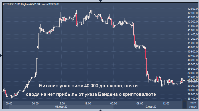 Биткоин и другие криптовалюты упали в четверг, поскольку первоначальный ажиотаж вокруг указа президента США Джо Байдена о цифровых активах угас.