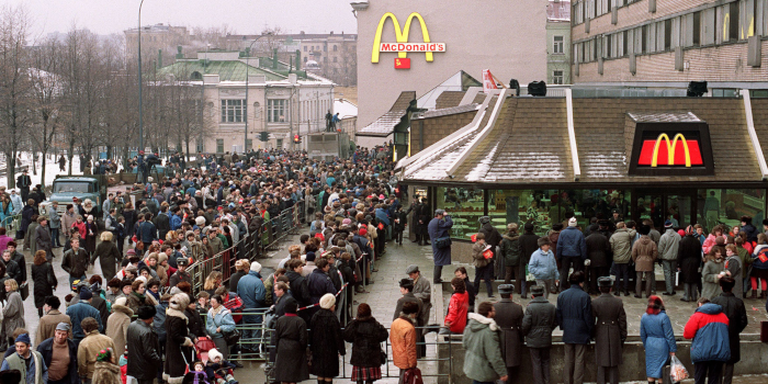 Закрытие «Золотых арок» в России, о котором было объявлено 8 марта, символизирует упадок страны во многом так же, как появление сети ресторанов быстрого питания десятилетиями ранее укрепило репутацию страны как многообещающего места. Сотни москвичей выстроились в очередь у первого «Макдоналдса», когда он открылся 31 января 1990 года. Теперь фотографии россиян, складирующих в морозильных камерах последние несколько биг-маков и продающих «Хэппи Мил» по завышенным ценам на Avito, заполонили ленты социальных сетей. Остается неясным будущее 850 магазинов, закрытых McDonald’s, и 62 000 местных сотрудников, которым компания заявила, что пока продолжит платить.