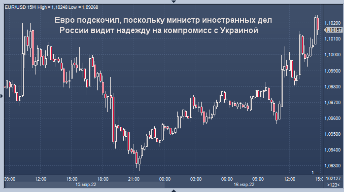 Евро ненадолго подскочил до 1,10 доллара после того, как Лавров заявил, что некоторые спорные вопросы с Украиной близки к согласованию, а нейтральный статус Киева находится в «серьезном» рассмотрении.