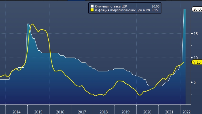 С учетом последних данных по инфляции уровень ключевой ставки в 20% выглядит “вполне адекватным” в данный момент, говорится в обзоре Альфа-Банка.