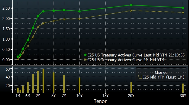 Изменения на коротком конце кривой боле значительные: аналитики теперь видят двухлетнюю ставку на уровне 2,9% к концу 2022 года и 3,15% к концу 2023 года. В настоящее время этот показатель составляет около 2,12%.