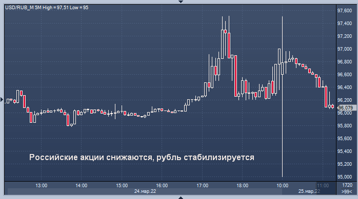 Рубль в среду достиг самого сильного уровня за три недели на уровне 94,9875 после того, как Путин заявил, что Россия начнет продавать свой газ «недружественным» странам в рублях.