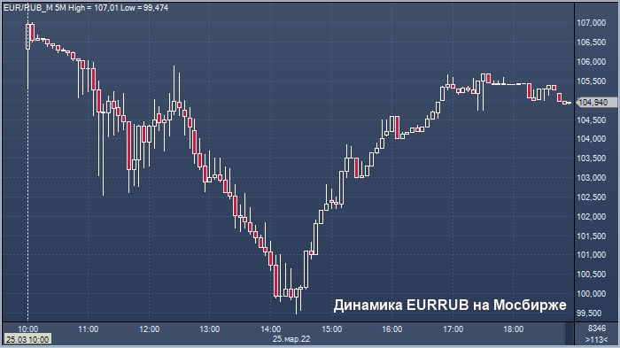 Курс евро к рублю на Московской бирже интервалами 5 минут