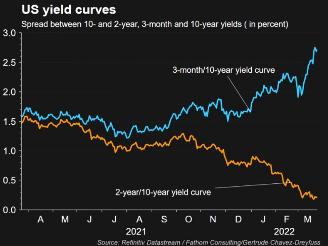 «Расхождение в 3-месячных и 2-летних казначейских ставках предполагает, что рынок оценивает все более ястребиную ФРС в течение следующих двух лет».