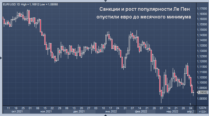 Французский евроскептик, крайне правый кандидат Марин Ле Пен, приближающийся к президенту Макрону в опросах общественного мнения в преддверии президентских выборов в этом месяце, "добавляет еще одну угрозу для евро", добавили стратеги ING.