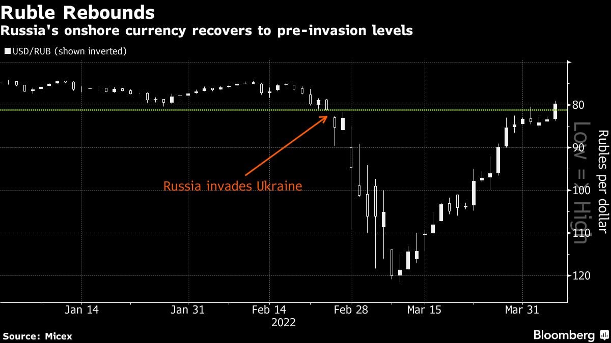 Быстрое восстановление рубля дает Путину крупную победу в России, где многие люди зациклены на взлетах и падениях валюты, даже несмотря на то, что в Украине идет не все так, как хотелось, а во всем мире растет возмущение по поводу действий Москвы.