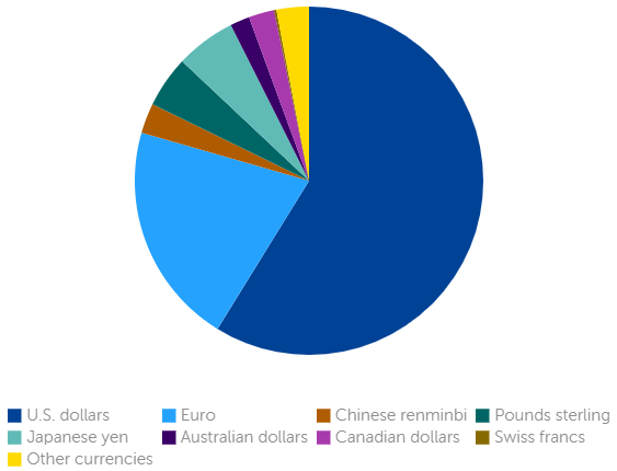 Структура мировых валютных резервов по состоянию на конец 4 квартала 2021 года. Источник: Международный валютный фонд