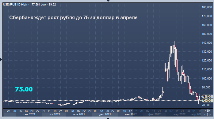 Спрос на валюту в понедельник может резко вырасти, и тогда рубль ослабнет до 80 руб./$1, предполагают экономисты Sber CIB. Но в текущем месяце, по их мнению, национальная валюта, скорее всего, вновь вернётся к 75 руб./$1 при поддержке экспортёров, которым предстоят крупные налоговые выплаты.
