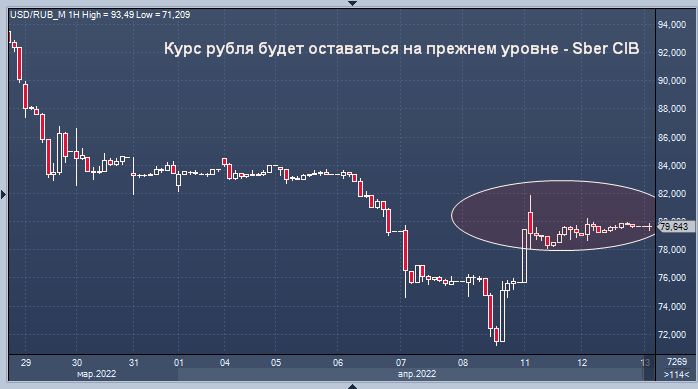 Курс доллар/рубля на Forex интервалами в 4 часа