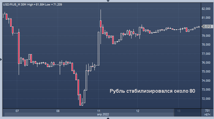 Российский рубль стабилизировался около 80 за доллар в среду, а фондовые индексы немного выросли, потеряв импульс после нескольких недель нестабильной торговли.