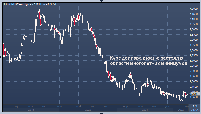 Курс доллара к юаню интервалами 1 неделя