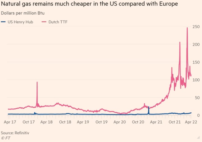 «Будущее американского СПГ зашкаливает», — сказал Майкл Смит, исполнительный директор Freeport LNG, которая управляет экспортным терминалом к югу от Хьюстона. «Европа признает, что им нужен СПГ, вместо того, чтобы полагать, что они могут выбраться из этого [энергетического кризиса] только с помощью возобновляемых источников энергии. . . Это большой позитивный шаг».
