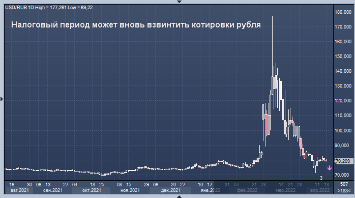 В этом месяце рубль может получить поддержку от налоговых платежей, поскольку компании должны заплатить рекордные 3 трлн рублей (37,50 млрд долларов) налогов, для чего некоторым компаниям, ориентированным на экспорт, необходимо продавать иностранную валюту, по мнению аналитиков, опрошенных Reuters.