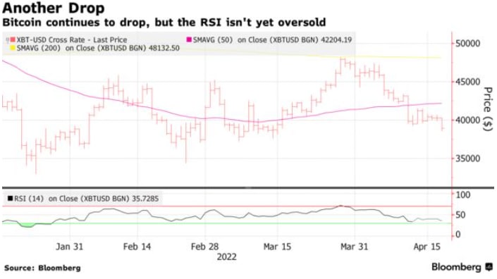 Биткоин продолжает падать, но RSI еще не перепродан. График Bloomberg