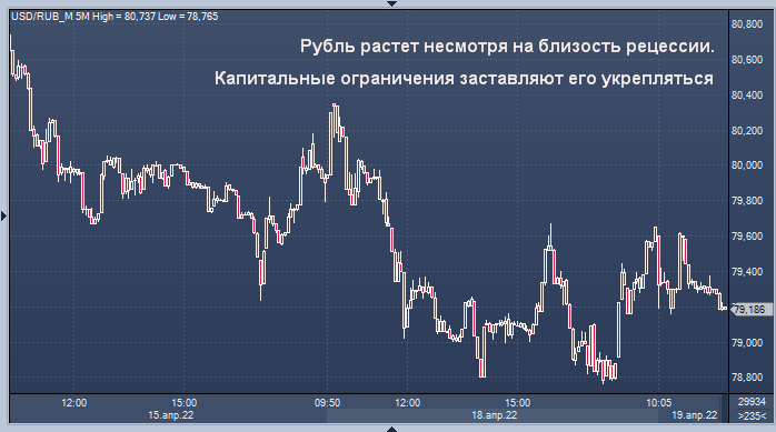 Движение рубля искусственно ограничено контролем за движением капитала, который Россия ввела в конце февраля в ответ на удар, нанесенный ее финансовому сектору и экономике беспрецедентными западными санкциями. Санкции призваны наказать Москву за отправку десятков тысяч военнослужащих на Украину 24 февраля.