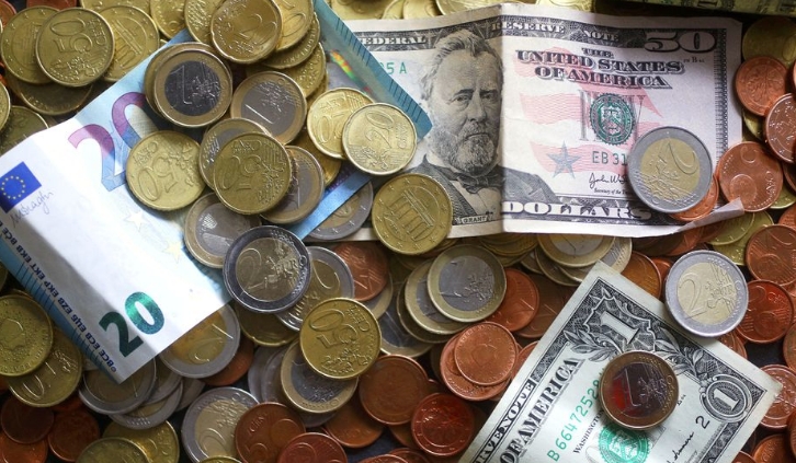На иллюстрации показаны банкноты и монеты евро и долларов США, 8 апреля 2017 г. REUTERS/Kai Pfaffenbach