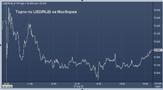 - 72,8764 рубля за 1 доллар