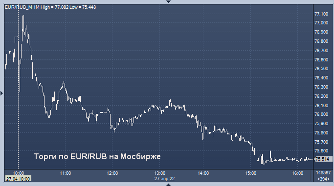 - 75,9224 рубля за 1 евро
