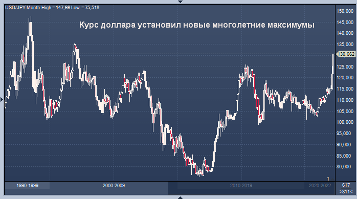 В этом году иена находилась в свободном падении, так как голубиный Банк Японии удерживает локальные доходности на уровне пола, в то время как их эквиваленты казначейских облигаций растут на ожиданиях агрессивного повышения ставок Федеральной резервной системы. Валюта также пострадала из-за позиции Японии как импортера сырья во время роста цен.