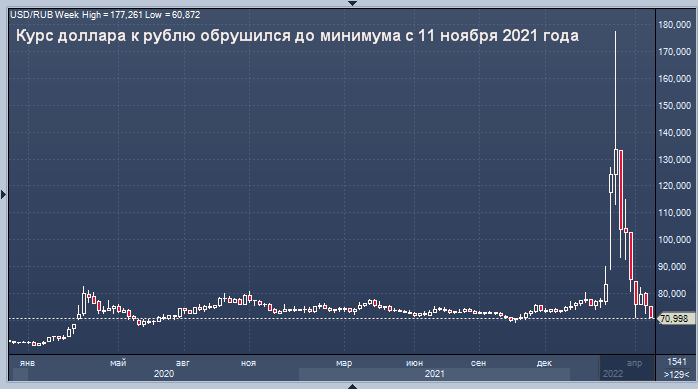 Рубль полностью восстановился до уровней, наблюдавшихся до 24 февраля, когда Россия начала специальную военную операцию на Украине, что привело к беспрецедентным западным санкциям, включая замораживание российских резервов и усилия по ограничению доступа российских банков к мировой финансовой системе.