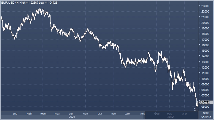 В то же время с января евро упал примерно на 8% до пятилетнего минимума около 1,05 доллара. Большая часть падения произошла после начала вооруженного конфликта между Россией и Украиной, которое началось 24 февраля, но падение единой валюты уже началось ранее. С конца мая прошлого года евро снизился более чем на 14%.
