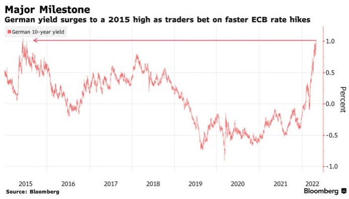 Доходность в Германии выросла до максимума 2015 года, поскольку трейдеры делают ставку на более быстрое повышение ставок ЕЦБ.