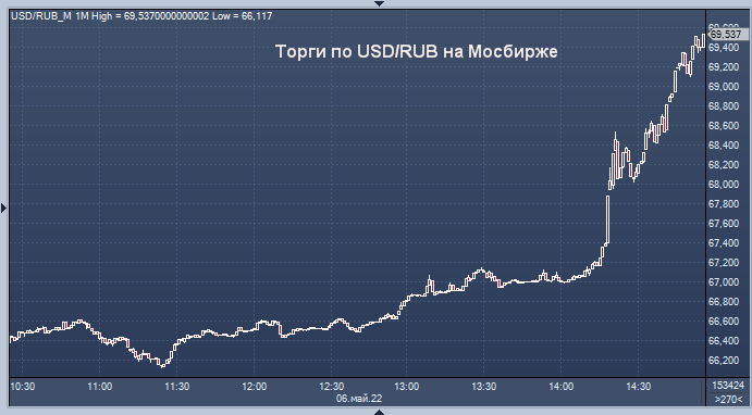Курс доллара к рублю на Мосбирже рухнул до 69,07