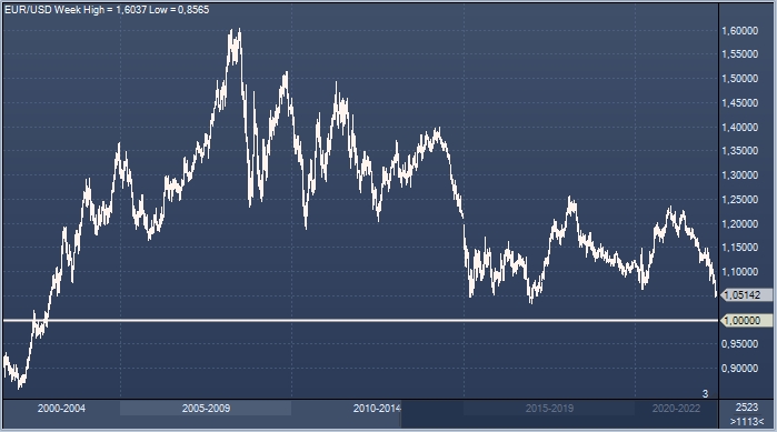 Межбанковские трейдеры говорят мне, что, хотя они помнят о поддержке евро в районе 1,05 доллара, они не видят веских оснований для прекращения падения. Это все еще медвежий рынок для единой валюты, но и вознаграждение за риск при открытии новой короткой позиции на текущих уровнях не кажется таким уж прибыльным, что может объяснить, почему падения ниже этого уровня недолговечны. Таким образом, в то время как движение к 1,10 доллара требует каких-то важных новостей, движение к паритету идет по тому же пути. Упасть к паритету будет непросто.