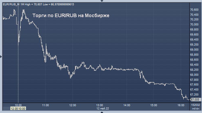 Таким образом, по официальному курсу ЦБ доллар вырос к рублю на 3 рубля 4 копейки, а евро упал к рублю на 3 рубля 85 копеек по сравнению с официальным курсом четверга. Объем торгов на Московской бирже к 16:13 мск четверга составил 690,6472 млрд рублей или 10 032,8038 млн долларов. Рубль сегодня еще более резко вырос на фоне громадного превышения поступлений валюты от экспорта энергоносителей над спросом на нее со стороны импортеров.