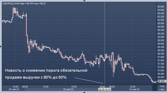 "Снижение порога обязательной продажи валюты с 80% до 50% - это тот максимум, на который может пойти ЦБ, чтобы смягчить укрепление курса рубля, - полагают Орлова и Ростовцева. - В 2021г сырьевые экспортеры платили в бюджет сумму, эквивалентную примерно 60% своей годовой экспортной выручки, таким образом, они вероятно сохранят сейчас продажу соответствующего размера экспортной выручки, независимо от регулирования ЦБ. Реакция рынка на вчерашнее решение, то есть тот факт, что курс рубля составлял примерно 58 руб./$1, судя по всему, указывает на слабую чувствительность рынка к усилиям властей предотвратить укрепление курса рубля".