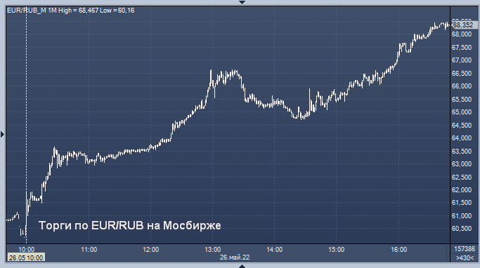Таким образом, по официальному курсу ЦБ доллар вырос к рублю на 5 рублей 75 копеек, а евро вырос к рублю на 95 копеек по сравнению с официальным курсом четверга. Объем торгов на Московской бирже к 16:43 мск четверга составил 950,0205 млрд рублей или 16 874,3745 млн долларов. Рубль сегодня рухнул на 12% на фоне снижения ставки ЦБ, прохождения пика налогового периода, ослабления контроля за движением капитала и подозрений на скрытые интервенции регулятора.