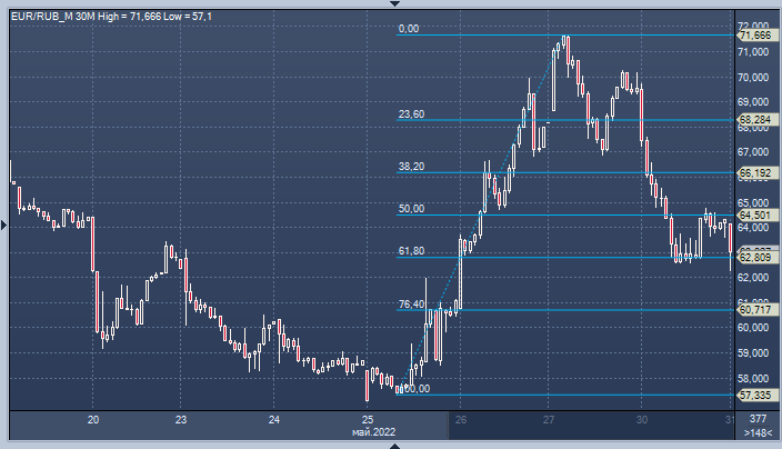 Курс евро к рублю интервалами 30 минут