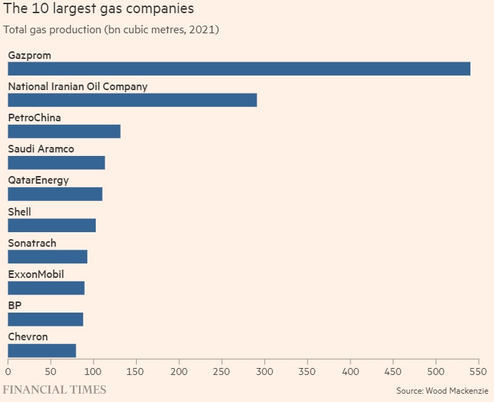 «Газпром» был приватизирован в 1992 году и возвышается над мировым газовым рынком, произведя в прошлом году 540 миллиардов кубометров топлива — больше, чем BP, Shell, Chevron, ExxonMobil и Saudi Aramco вместе взятые.